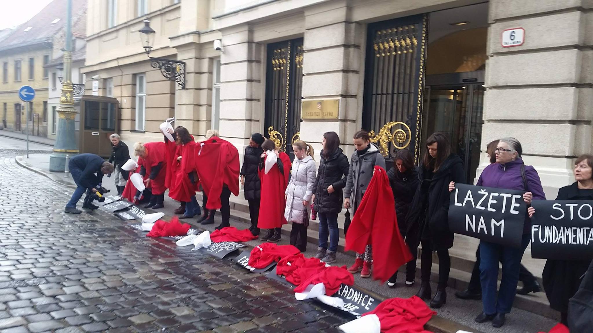 15.12.2017. Zenska mreza Hrvatske, Autonomna zenska kuca Zagreb, Lezbijska grupa Kontra i Domine Split organizirale su prosvjednu akciju pod nazivom «STOP fundamentalistickom nasilju nad zenama». Prosvjedna akcija se odrzala u petak 15. prosinca 2017. od 10 sati na Trgu svetog Marka u Zagrebu i na Narodnom trgu u Splitu.15. prosinca je posljednji dan još jedne sjednice Hrvatskog sabora na kojoj nije usvojena Konvencija Vijeca Europe o sprjecavanju i borbi protiv nasilja nad zenama i nasilja u obitelji.