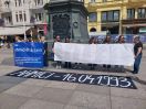 Tribini je prethodila antiratna protestna akcija u znak sjecanja na žrtve Ahmica, istoga dana, 16. travnja 2025. na Trgu bana J. Jelacica, u 12 sati.